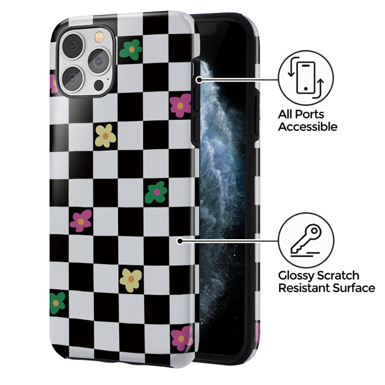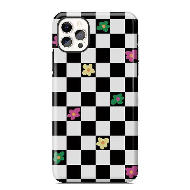 Take time to relax with our Lunch Break - phone case. The playful addition of colorful retro flowers to the classical black and white checkered pattern will add that extra pop of color. It will bring that much-needed *oomph* to your phone. With this playful design, you can keep your phone cute and protected!