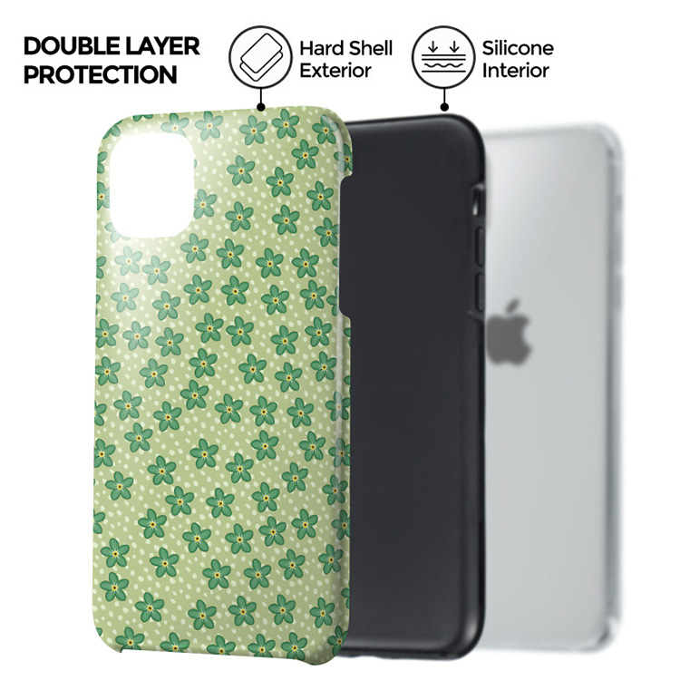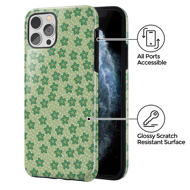 As beautiful as summery-dress and as green as the flowery meadows, the Daydream phone case is an absolute must-have for those romantic summer days and strolls around the city! Tiny green flowers meet with a playful dotted pattern fitting into the Y2K craze and create the cutest protective phone case!