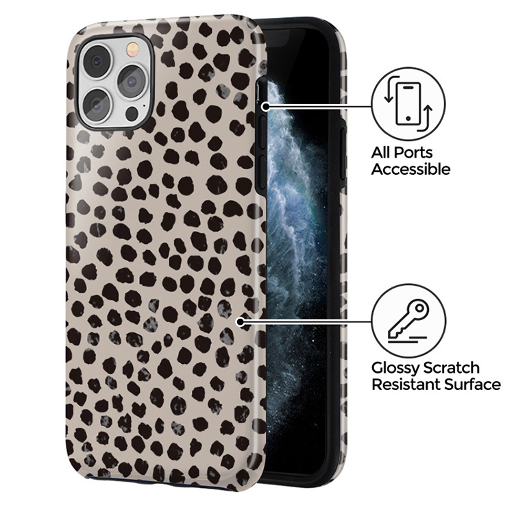 Cute cream color as a background for the unique pattern of asymmetrical black spots creates a real eye-catcher in our Almond Latte phone case. The spotted pattern adds a touch of luxury to your phone, while the case's hard-shell nature offers much-needed protection making it a popular choice between fashion lovers.