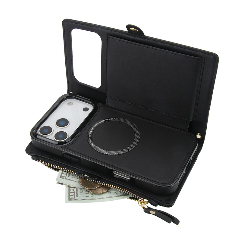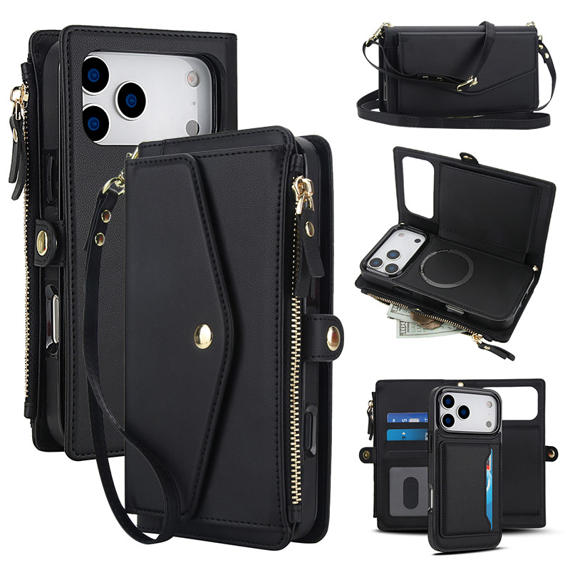 Casebus Classic Crossbody Wallet Phone Case, Premium Leather, Credit Card Holder, Zipper Pocket Purse Handbag, Kickstand Shockproof Case