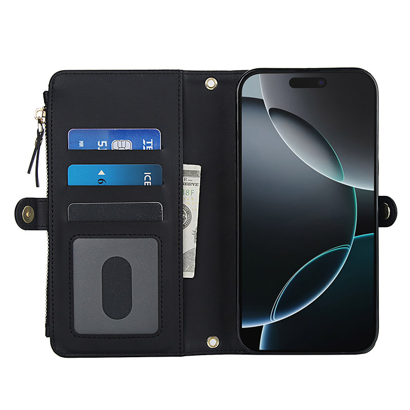 Casebus Crossbody Wallet Phone Case, Multi Function Stylish Ring Zipper Purse Cover, with Card Slots & Wrist Strap
