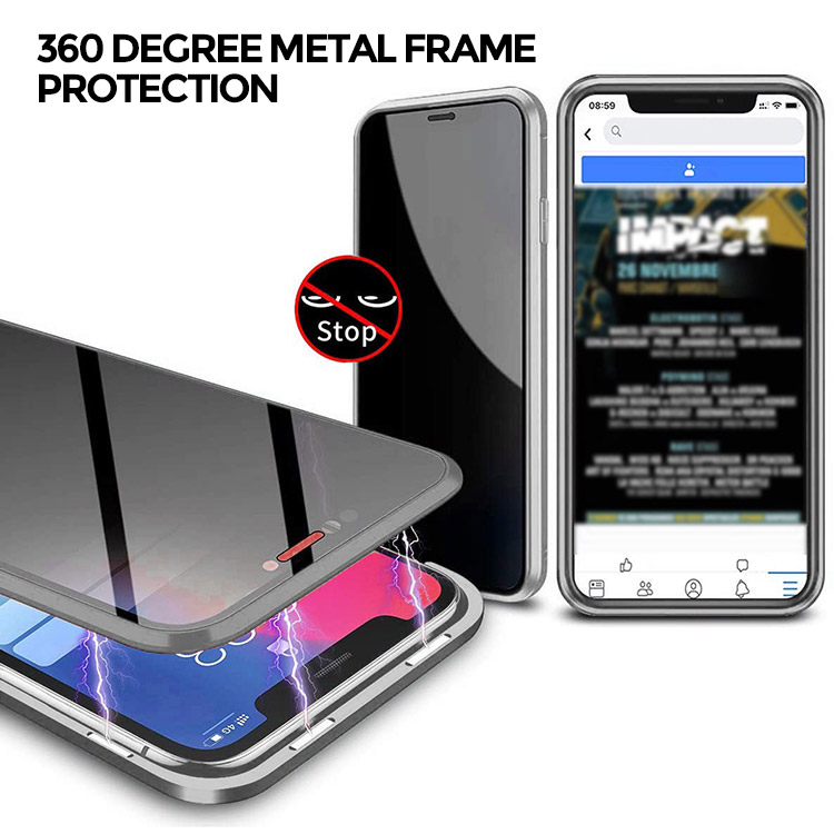 LOONEY Casebus Double Sided HD Clear Anti-Peep Magnetic Phone Case, Built in Privacy Screen Protector Metal Bumper Frame 360 Full Protective Cover