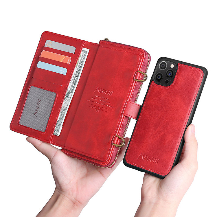 Casebus Classic Detachable Magnetic Wallet Phone Case, 11 Card Slots, 2 in 1, Leather Zipper, Folio Flip, Money Pocket Clutch Case