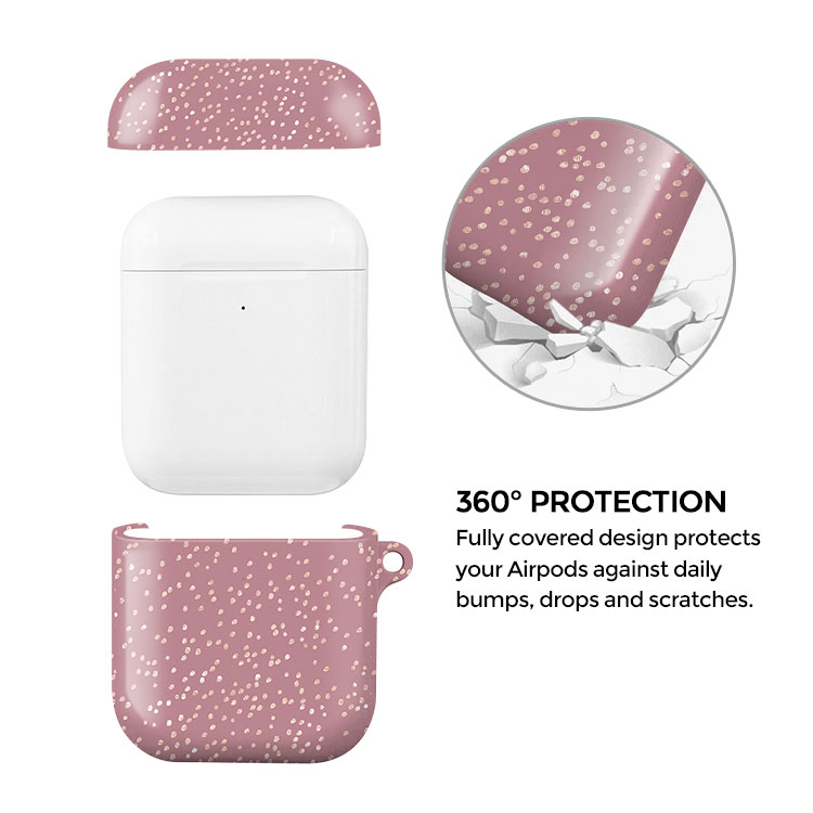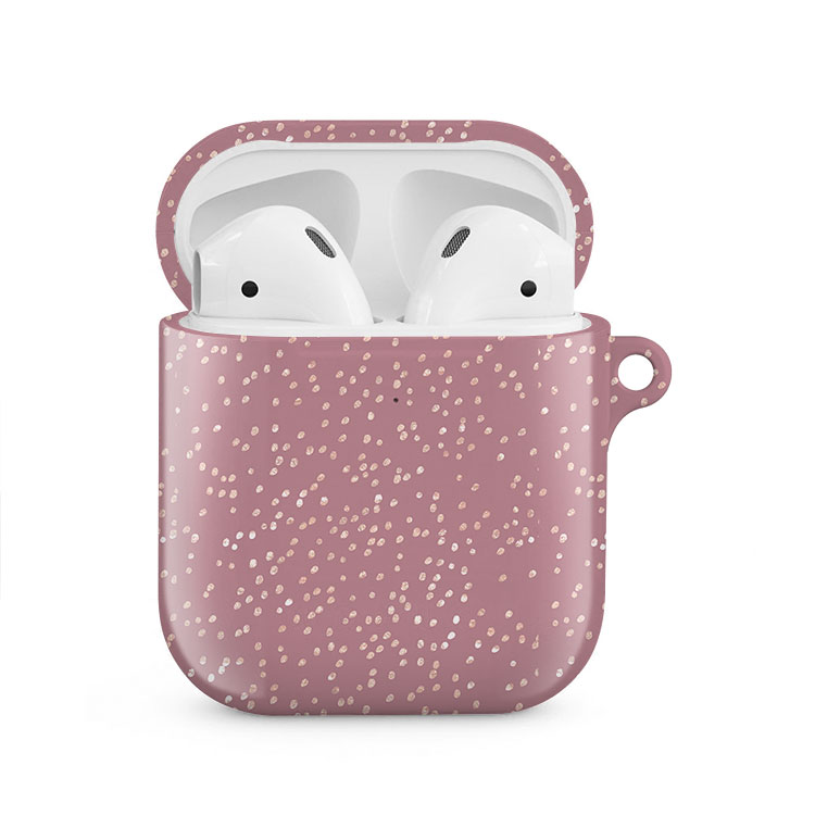 Trendy mauve color as a background for the gold-colored spots creates true beauty. Make your Airpods stand out with our protective and pretty Hot Cocoa case. The spotted pattern adds a touch of luxury to your Airpods, while the case's hard-shell nature offers much-needed protection.