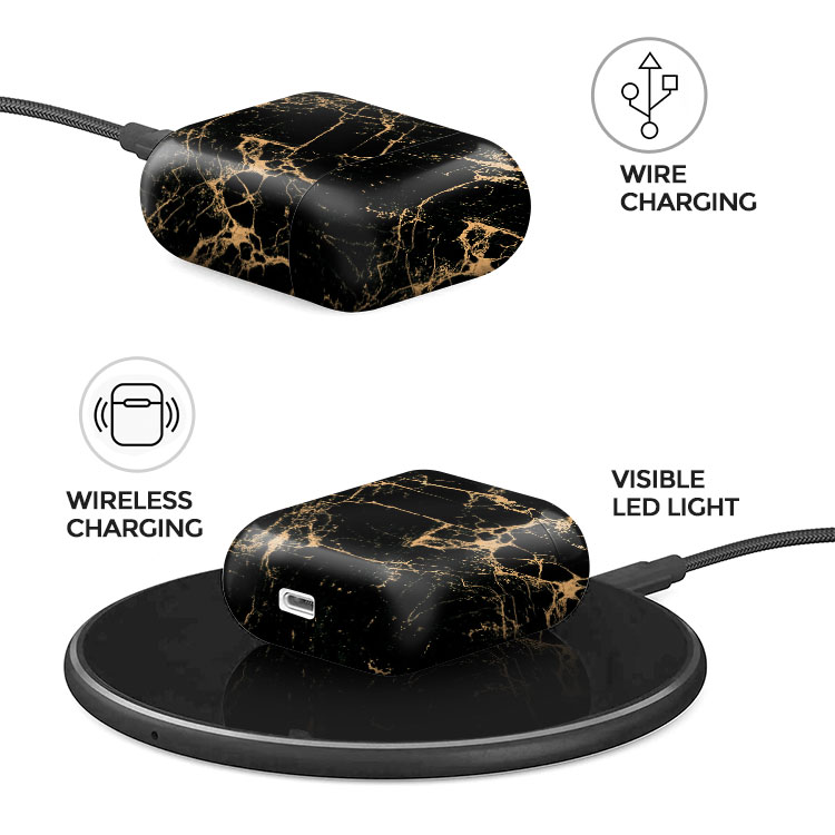 Please check the model of your Airpods before making a purchase; * The case does not contain actual glitter-it is a printed pattern * With this Airpods case combining trendy marble patterns with black, you can have the elegant piece of a magical world in your hand. We're so sure you'll love this Airpods case that we offer our customers the option to return or exchange within 60 days.