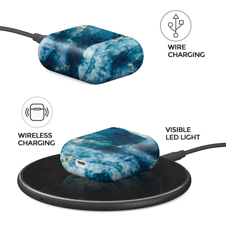 Please check the model of your Airpods before making a purchase; * The case does not contain actual glitter-it is a printed pattern * With the Magic Blue Airpods case combining trendy marble patterns with dazzling blue, you can have the elegant piece of a magical world in your hand. We're so sure you'll love this Airpods case that we offer our customers the option to return or exchange within 60 days.