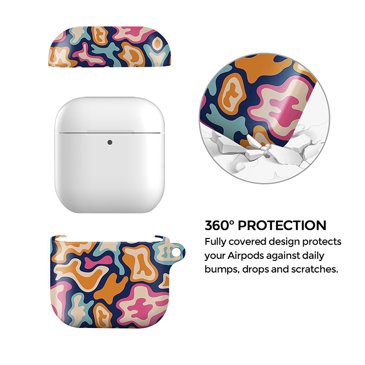 It's time to get funky, wild thing! There are few Airpods case designs as psychedelic and free-spirited as this one. Check out those groovy blues, oranges, and pinks spilling into cool navy organic shapes! It's interesting without being too over the top. Simply put: Midnight Color Splash, with its abstract retro style, is fun, serving color and a bold statement.