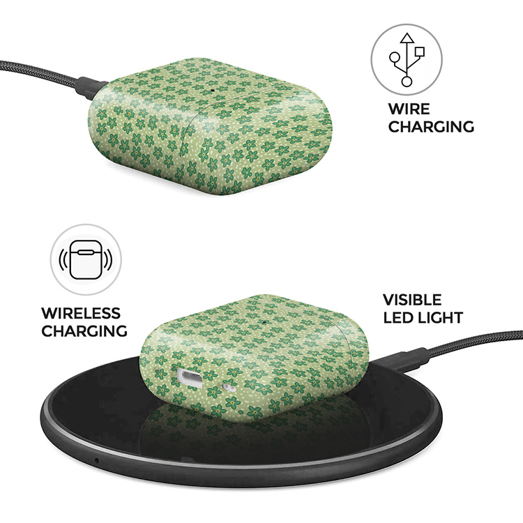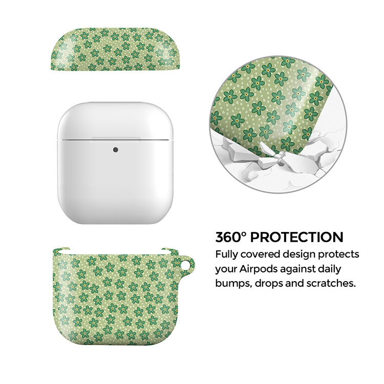 Please check the model of your Airpods before making a purchase; As beautiful as summery-dress and as green as the flowery meadows, the Daydream Airpods case is an absolute must-have for those romantic summer days and strolls around the city! Tiny green flowers meet with a playful dotted pattern fitting into the Y2K craze and create the cutest protective Airpods case! We're so sure you'll love this Airpods case that we offer our customers the option to return or exchange within 60 days.