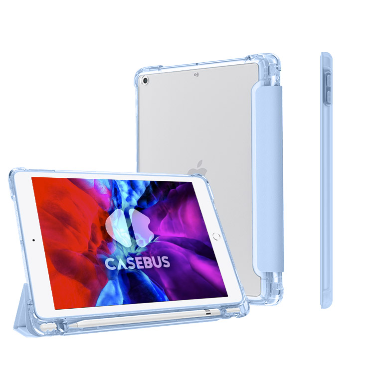 Casebus Classic Folio Case for iPad with Pencil Holder, Auto Sleep/Wake Soft Silicone Back Shell Stand Shockproof Case