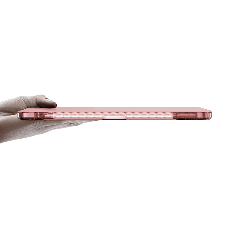 Extremely durable. Not flimsy at all. I looked at so many cases prior to this one and took a chance. The color is a beautiful light pink. The case looks and feels expensive. I have had cases like this before but I love the 360° feature in case I want to look at something vertical vs horizontal. You won’t be disappointed.