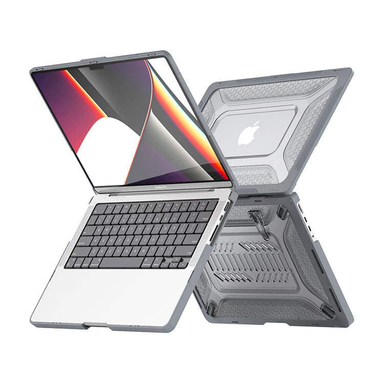 BRYDEN Casebus Case for MacBook, Honeycomb Shock Absorbing Protective & Slim Rubberized TPU Bumper, Folding Stand Cover