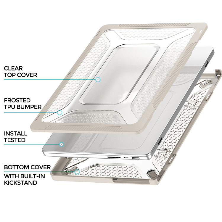 BRYDEN Casebus Case for MacBook, Honeycomb Shock Absorbing Protective & Slim Rubberized TPU Bumper, Folding Stand Cover