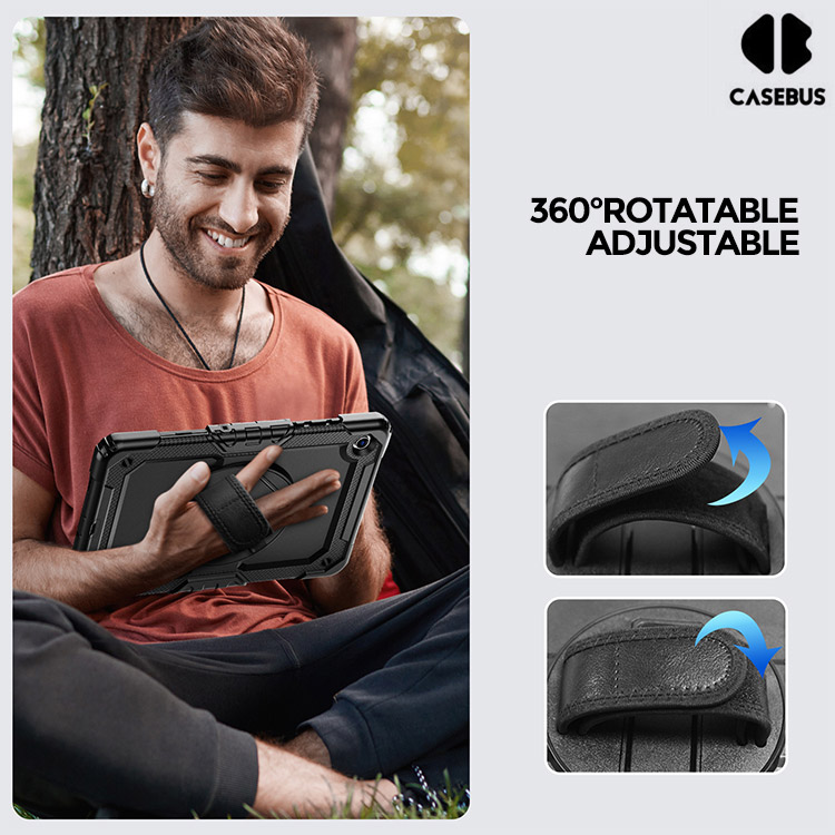 [Soft Hand Strap & Portable Shoulder Strap & Rotating Stand] Provide the securest protection and more convenience when you play or work with your tablet. Hang it anywhere for your better entertainment, make your hands free. 360 Degree rotating Kickstand provides multi-angle viewing, with soft handle strap, easier to use your tablet in your outdoor travelling, working, gaming with kids.