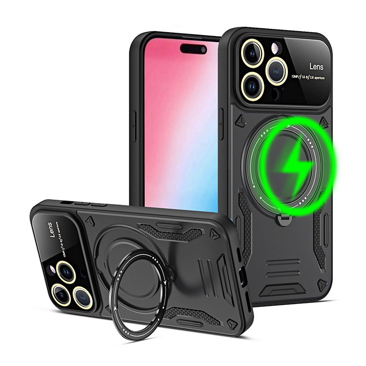 REMY Casebus Heavy Duty Magsafe Phone Case, 360° Rotatable Invisible Ring Stand, Support Wireless Charging