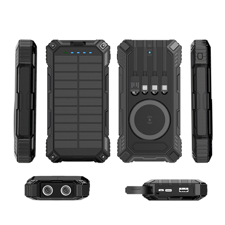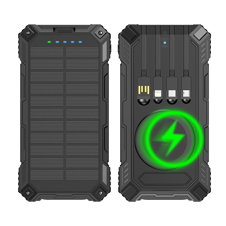 [Built-in Charging Cable] Wireless portable solar charger has built in iPhone, Micro, Type-C and USB cable compatible with iPhone, iPad and other android devices.