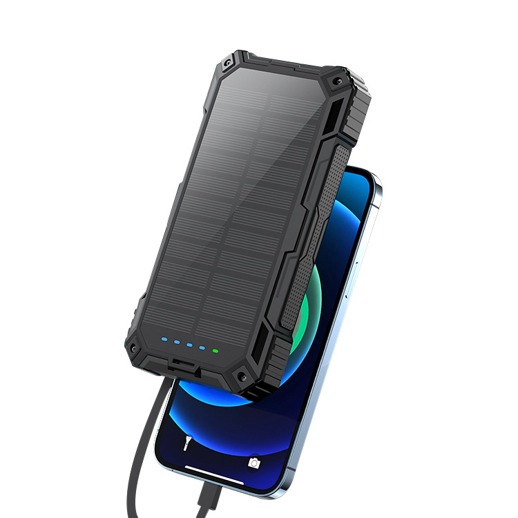 [Super Large Capacity] With 20000mAh premium Li-polymer battery, this solar power bank can charge your devices multiple times. It can be recharged via adapter and solar power, free your worries of poweroff.