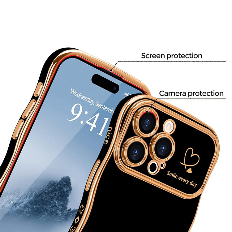 JENNIFER Casebus Luxury Plating Phone Case, Heart Wave Shaped Curled Edge Design, Shockproof Protective Cover