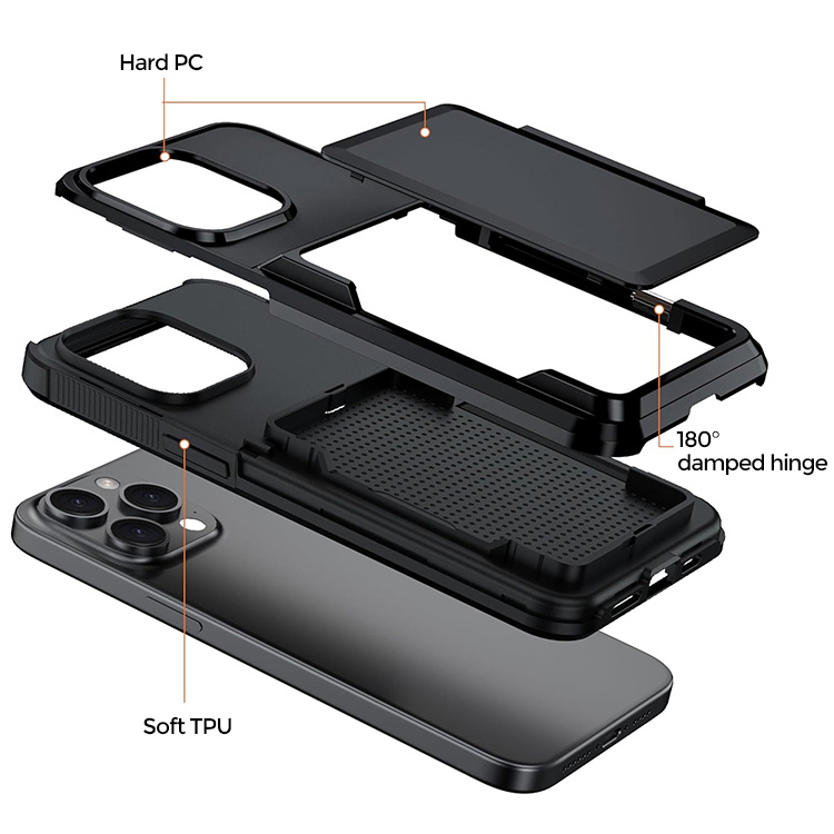 Casebus Classic Phone Case, with Credit Card Holder, Sliding Slot Heavy Duty Protection Dual Layer Armor Shell Cover