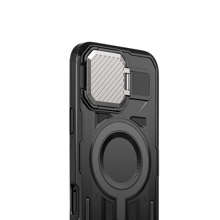 [Metal Camera Stand] The case comes with a sturdy zinc alloy lens mount that is adjustable from 0-130° and doesn't slide easily, keeping your lens clean while eliminating the need for additional customized lens protection film.