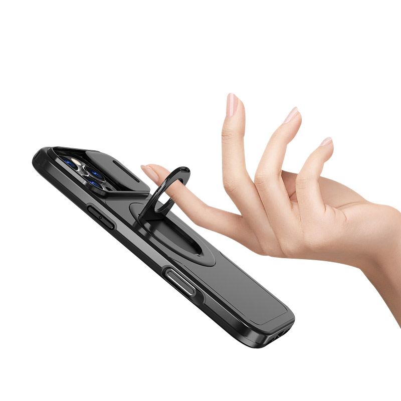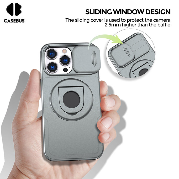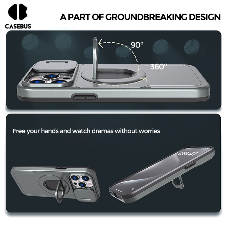 DALLAS Casebus Heavy Duty Magnetic Phone Case, Support Magsafe, with 360° Rotating Ring Kickstand & Slider Camera Lens Cover