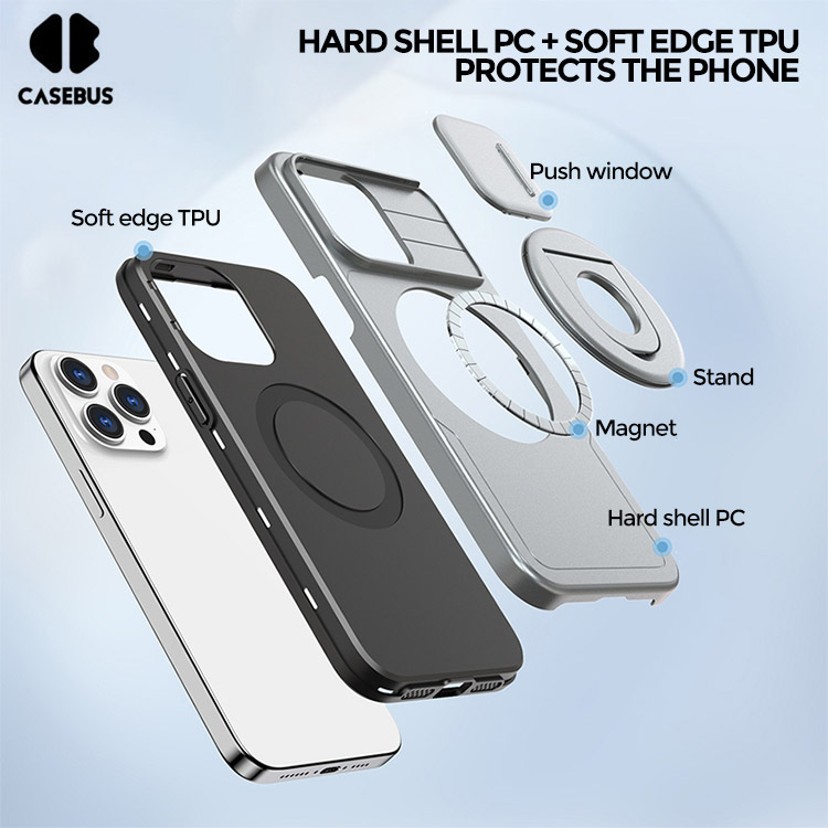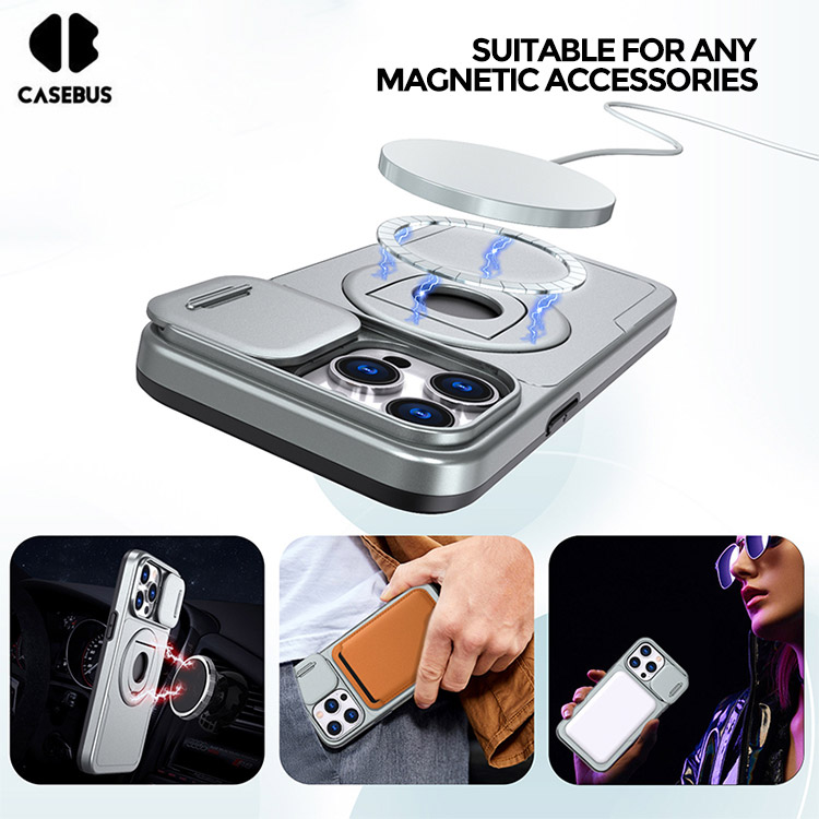 Casebus Slide Camera Cover Phone Case, with Armor, Heavy Duty Shockproof Kickstand Magnetic Car Mount Holder