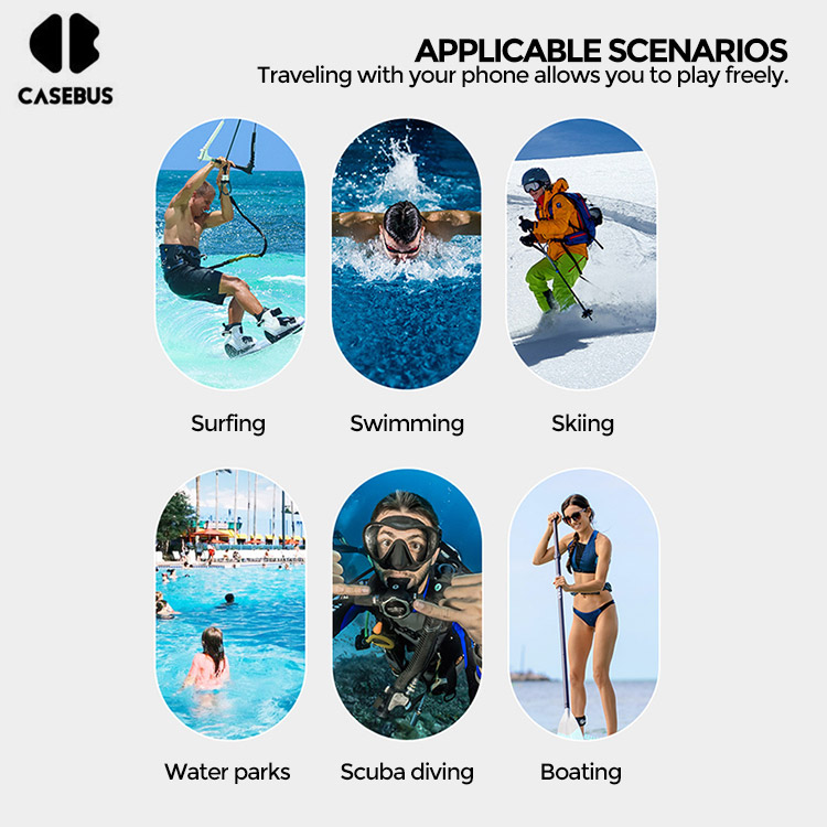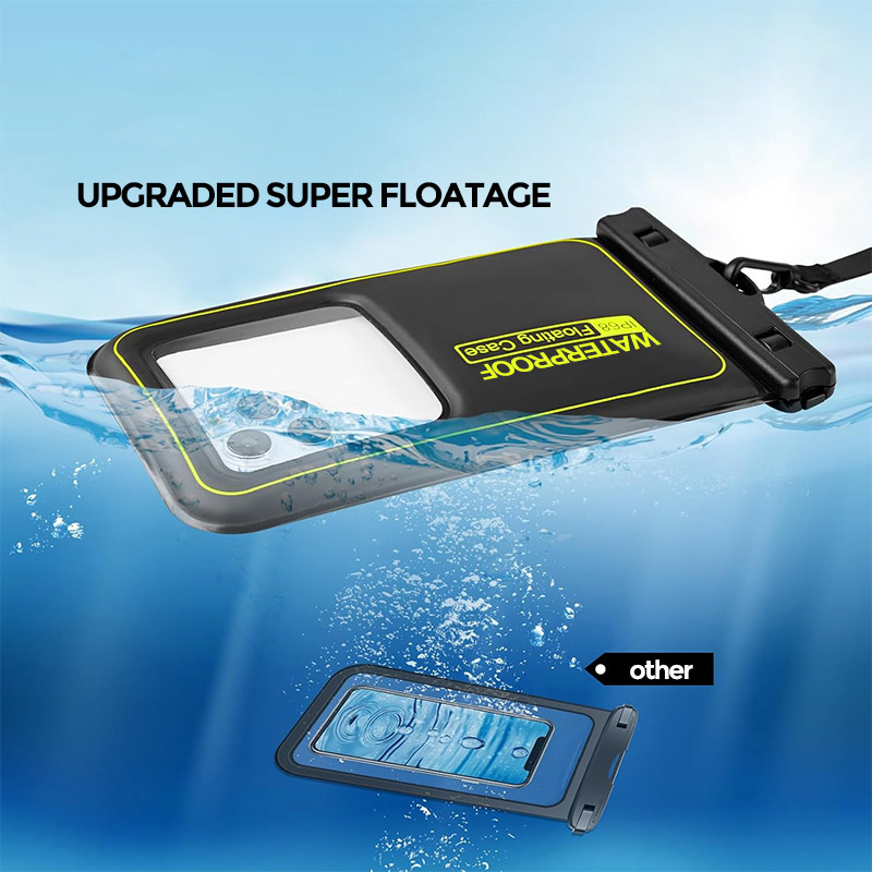 [IPX8 Waterproof] Floating waterproof phone pouch that fits phones up to 7.2" and IDs - Perfect for all beach and pool activities; Keeps your phone protected and fully functional, making it one of the best travel essentials/accessories. [Precise Design and Sensitive Touch] Waterproof case has an innovative design for easy access to side buttons; Made with high-quality pvc material and a Clear Window design on the front for delicate touch and quick response making it easy to see videos and check your email. [Fully Protective] This phone pouch comes with a detachable cell phone lanyard that can be worn around your neck or wrist to easily access your phone or ID, allowing you to enjoy your adventures to the fullest; Secure Lock Mechanism allows you to firmly lock and unlock the phone pouch, keeping it completely sealed underwater. [Underwater Photography] Take pictures anywhere, anytime With the transparent material, you can have direct and proper access to the touch screen and camera; Sensitive touch allows you to use your phone as an underwater camera, to take sharp and clear photos and videos without removing your device from the waterproof phone bag.