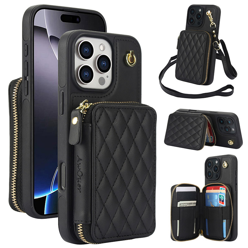 Casebus Classic Crossbody Wallet Phone Case, Premium Leather, Credit Card Holder, Zipper Pocket Purse Handbag, Kickstand Shockproof Case