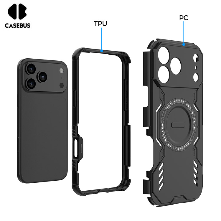Casebus Heavy Duty Tank Phone Case, with Screen Protector, Metal Rugged Kickstand Sturdy Full Body Case