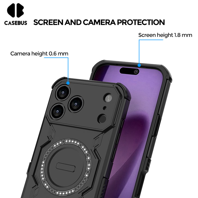 Casebus Slide Camera Cover Phone Case, with Armor, Heavy Duty Shockproof Kickstand Magnetic Car Mount Holder