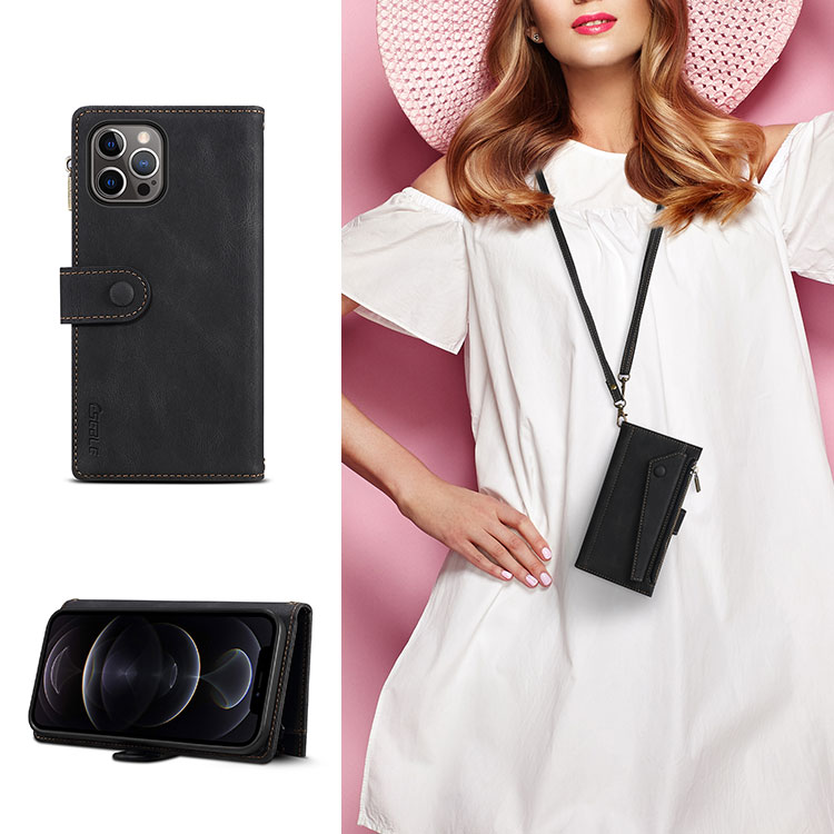 Casebus Crossbody Wallet Phone Case, With Detachable Strap Lanyard Magnetic Closure Credit Card Holder Leather Kickstand Shockproof Cover
