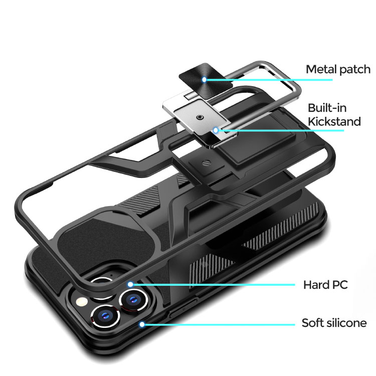 [Invisible Kickstand Design] Aluminum alloy plating kickstand is hide on the back side of this phone case, Beautiful, simple, stylish, generous, and seamlessly fit with the body. Built-in kickstand for convenient hands free portrait and landscape viewing angles. Allows you to use your phone hands-free in multiple viewing modes including Video call, watch movies, browsing the web etc.