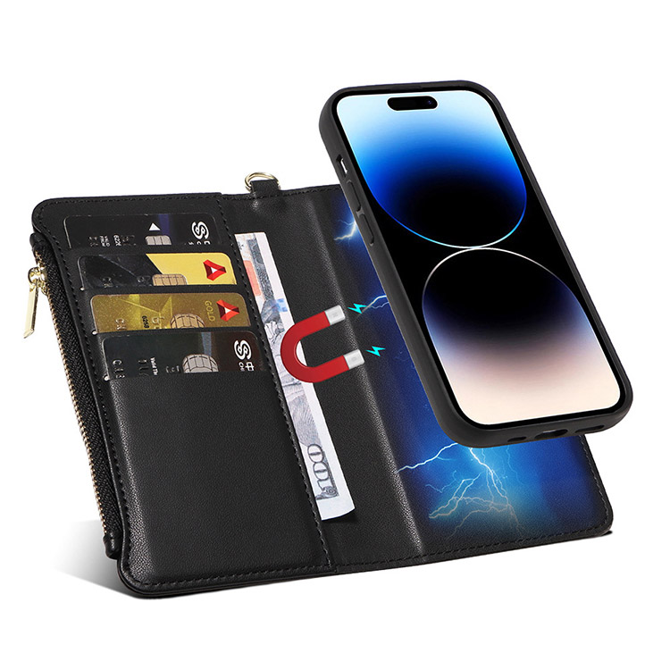 Casebus Crossbody Wallet Phone Case, With Detachable Strap Lanyard Magnetic Closure Credit Card Holder Leather Kickstand Shockproof Cover