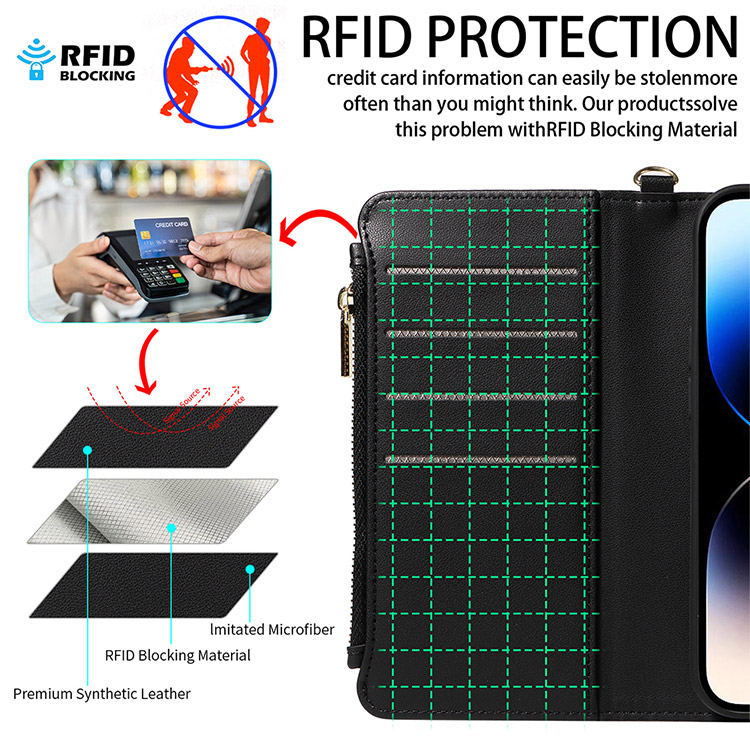 Casebus Classic Crossbody Wallet Phone Case, Premium Leather, Credit Card Holder, Zipper Pocket Purse Handbag, Kickstand Shockproof Case