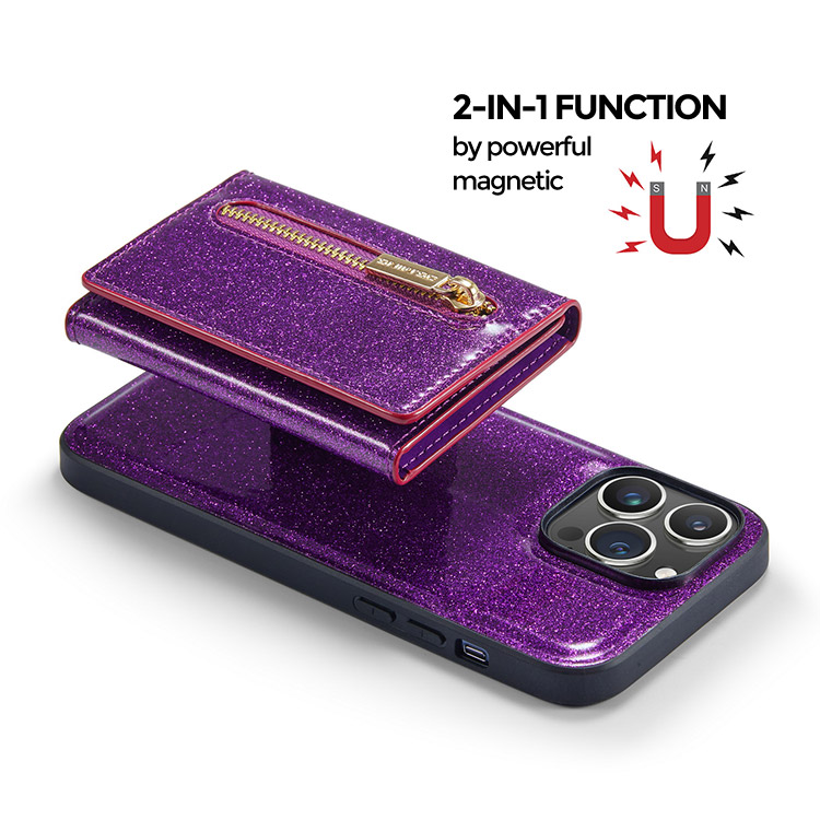 Casebus Magnetic Detachable Wallet Phone Case, Tri Fold 6 Card Slots Zipper Pocket Shockproof Back Cover