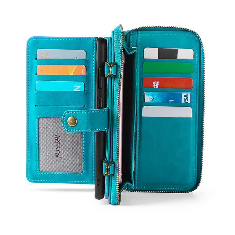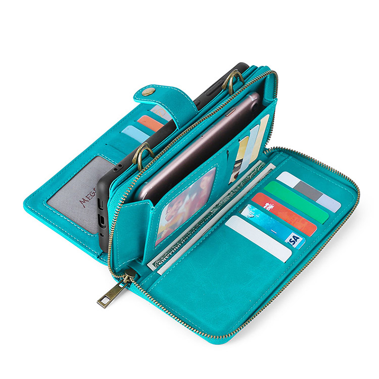 Casebus Multi Functional Wallet Phone Case, 14 Card Slots 3 Purse 1 Zipper 1 Wrist Band 1 Metal Buckle, Wrist Strap Clutch Magnetic Detachable