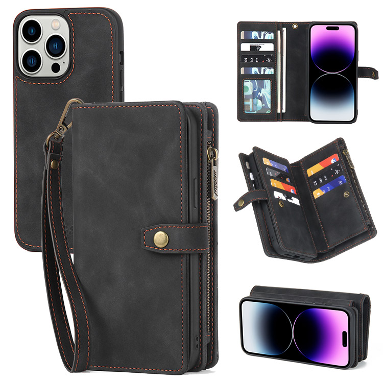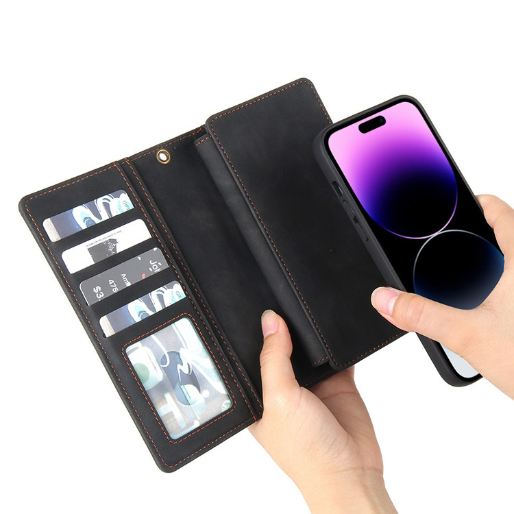 Casebus Classic Detachable Magnetic Wallet Phone Case, 11 Card Slots, 2 in 1, Leather Zipper, Folio Flip, Money Pocket Clutch Case