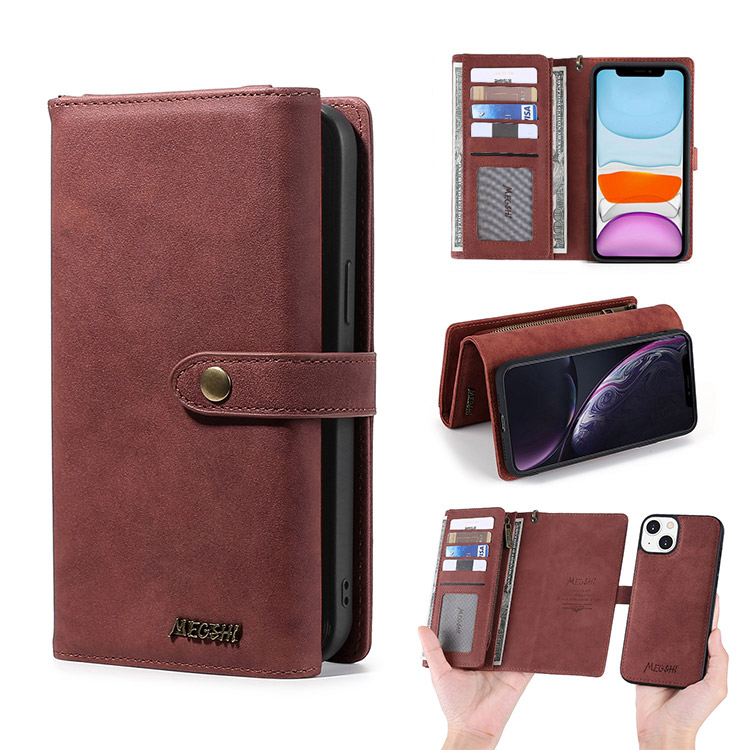 Casebus Classic Detachable Magnetic Wallet Phone Case, 11 Card Slots, 2 in 1, Leather Zipper, Folio Flip, Money Pocket Clutch Case