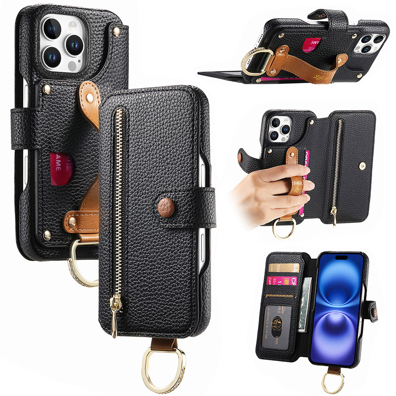 Casebus Crossbody Wallet Phone Case, Zipper Flip Folio Leather Cover, with Card Slot Holder & Wrist Band