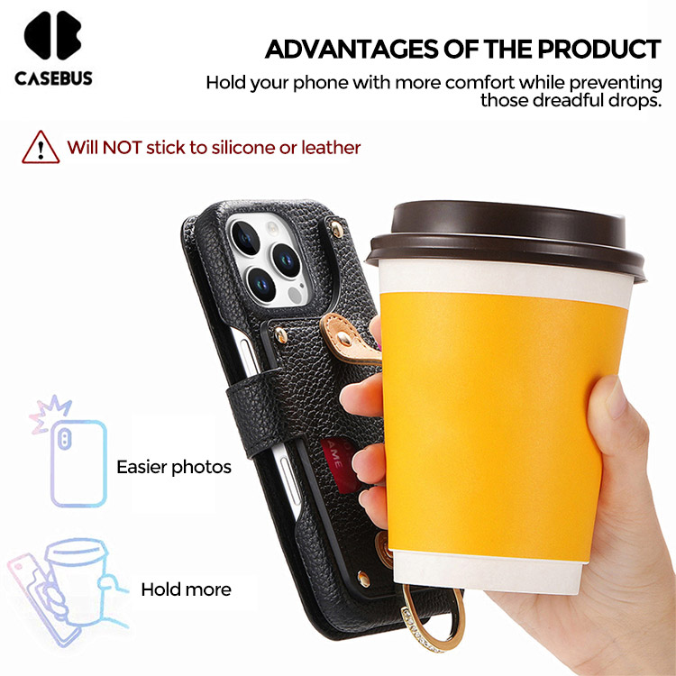 Casebus Crossbody Wallet Phone Case, With Detachable Strap Lanyard Magnetic Closure Credit Card Holder Leather Kickstand Shockproof Cover