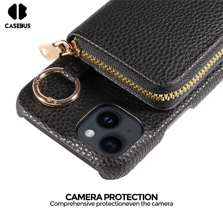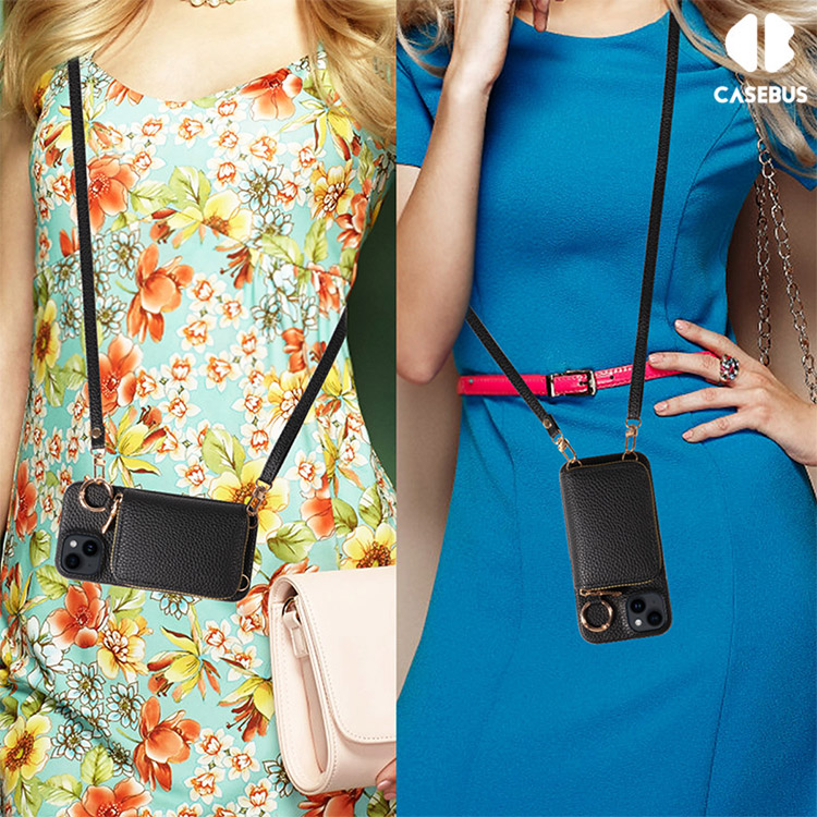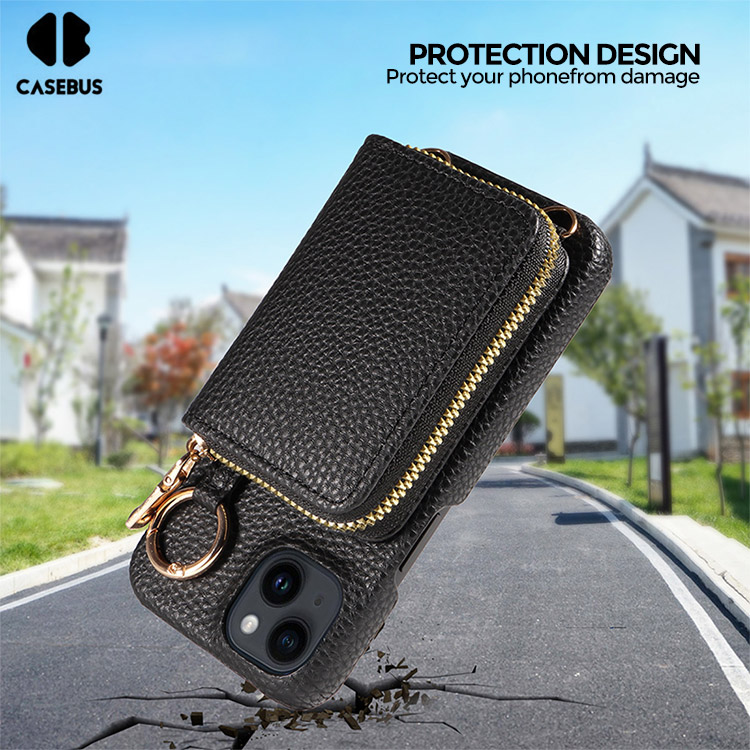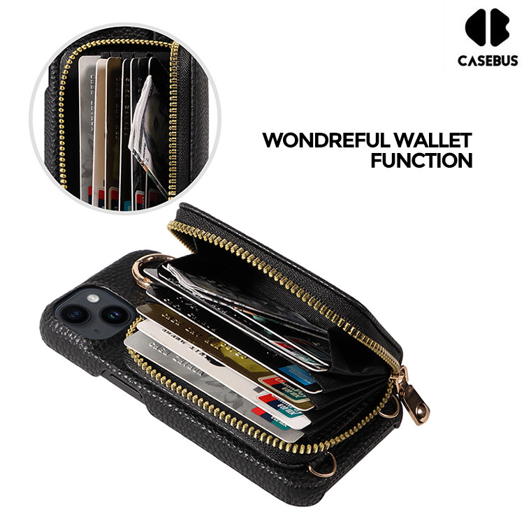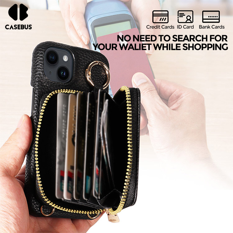 Casebus Classic Crossbody Wallet Phone Case, Premium Leather, Credit Card Holder, Zipper Pocket Purse Handbag, Kickstand Shockproof Case