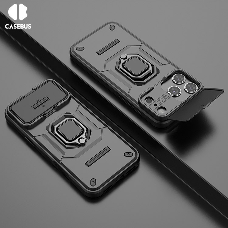 Casebus Slide Camera Cover Phone Case, with Armor, Heavy Duty Shockproof Kickstand Magnetic Car Mount Holder