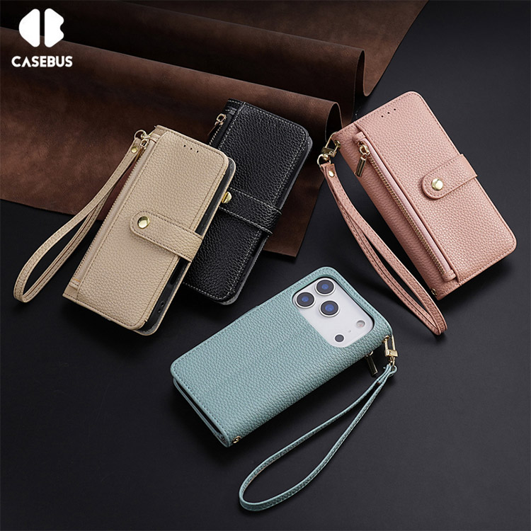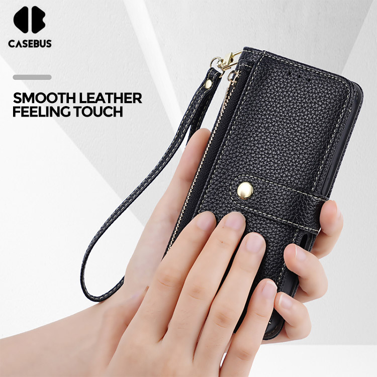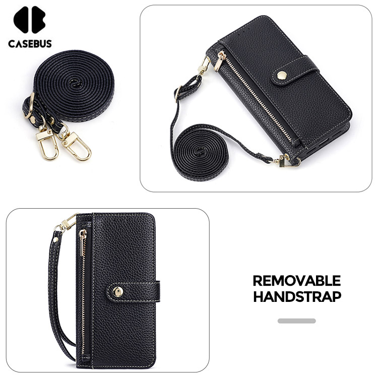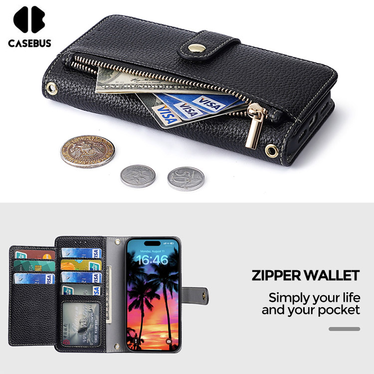 Casebus Classic Crossbody Wallet Phone Case, Premium Leather, Credit Card Holder, Zipper Pocket Purse Handbag, Kickstand Shockproof Case