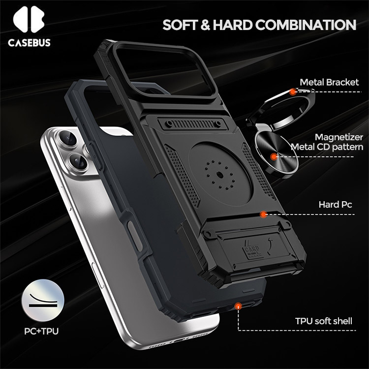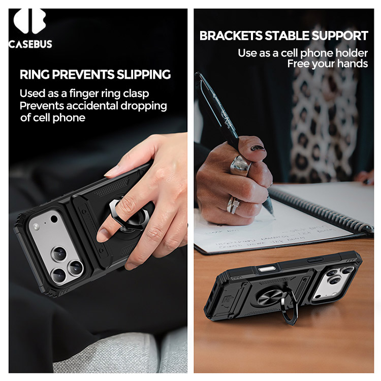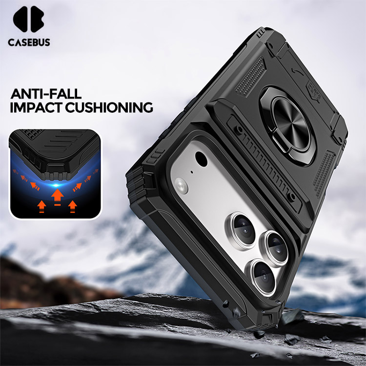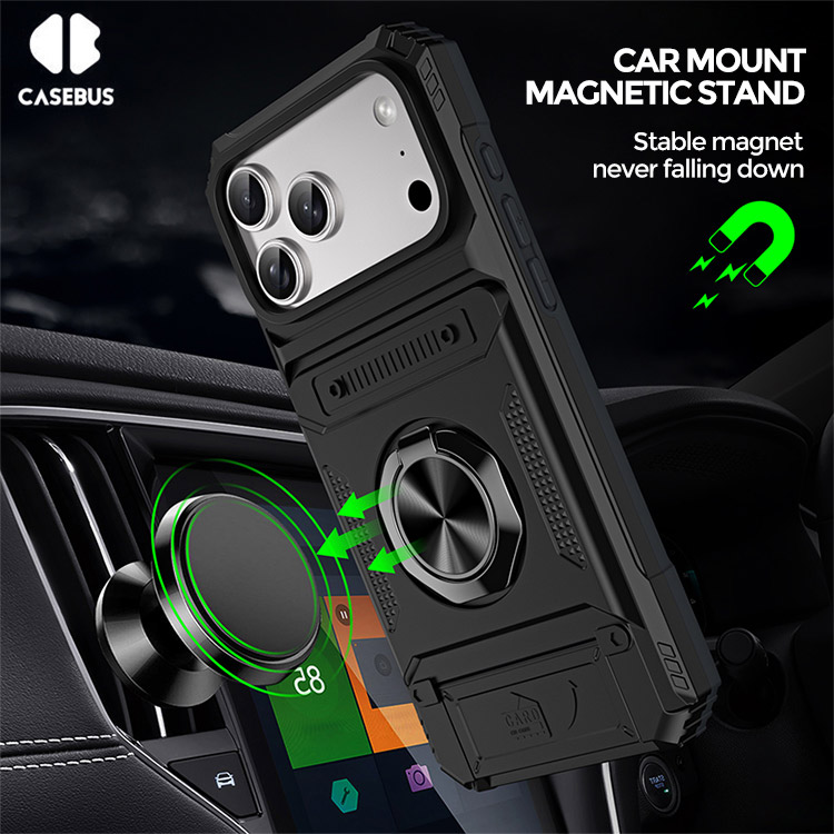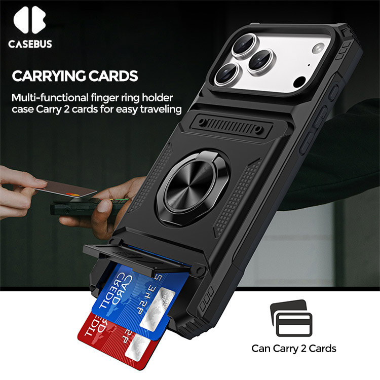 Casebus Classic Phone Case, with Credit Card Holder, Sliding Slot Heavy Duty Protection Dual Layer Armor Shell Cover