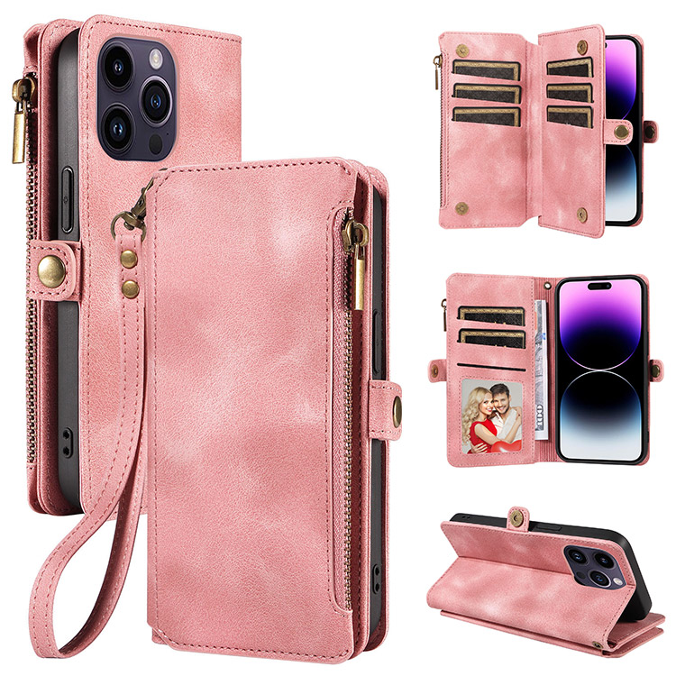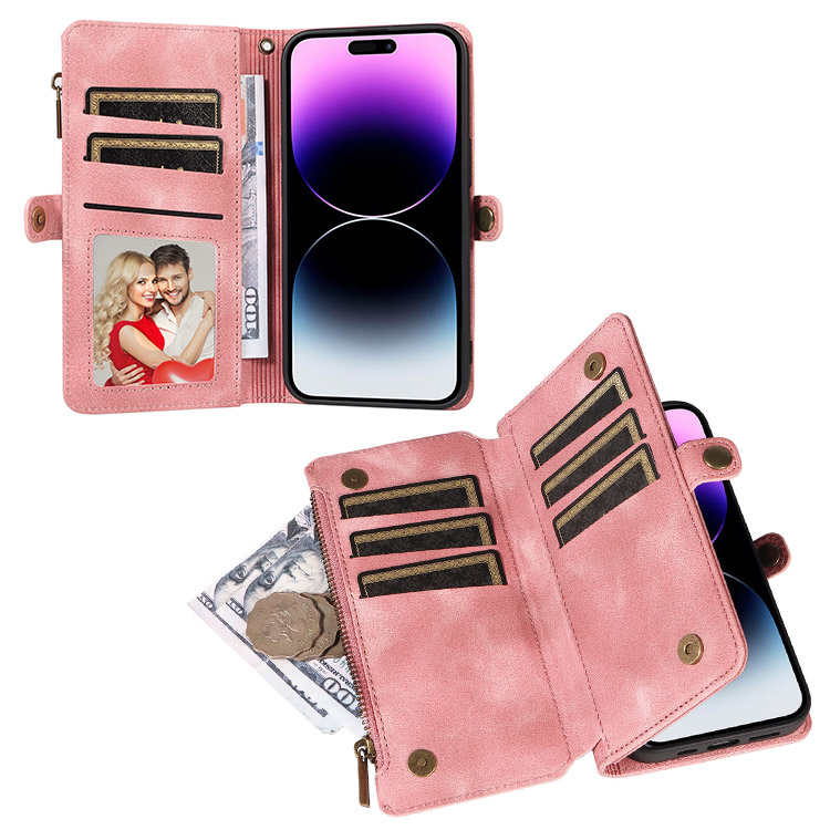 Casebus Multi Functional Wallet Phone Case, 14 Card Slots 3 Purse 1 Zipper 1 Wrist Band 1 Metal Buckle, Wrist Strap Clutch Magnetic Detachable