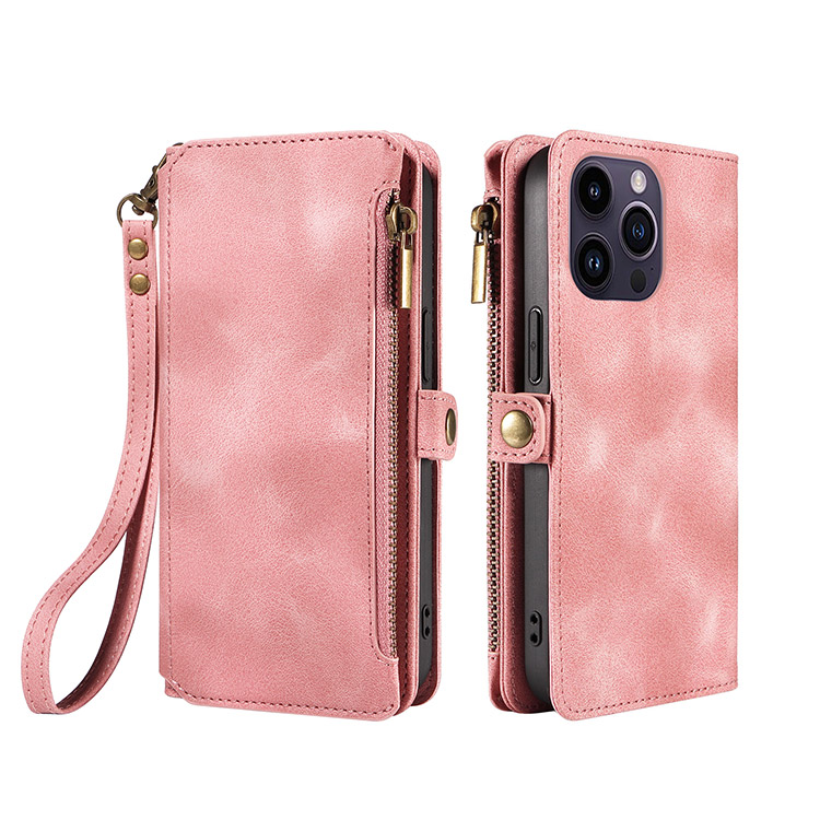 DAKSA Casebus Flip Phone Wallet Case, Support Wireless Charging, Wrist Strap & Zipper Pocket Card Holder, Fullbody Protection, Kickstand Cover