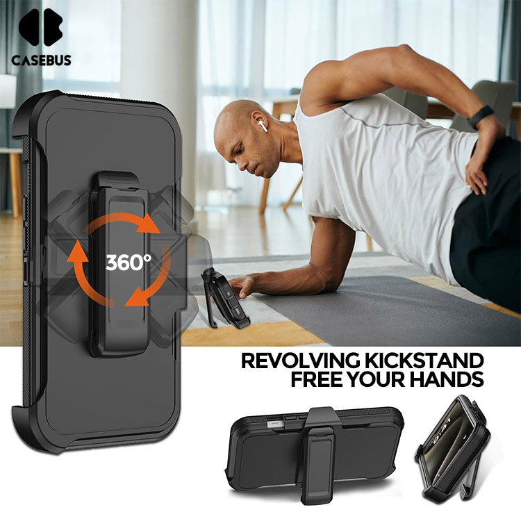 [Rotatable Belt-Clip Kickstand Holster] Our rugged holster belt clip case is perfect for outdoor activities.The 360-degree rotating belt clip serves as a durable kickstand, allowing for hands-free video viewing. The detachable holster attaches to your belt or bag, providing quick and secure access to your device. This case is designed for hassle-free carrying and supports both vertical and horizontal hands-free viewing.