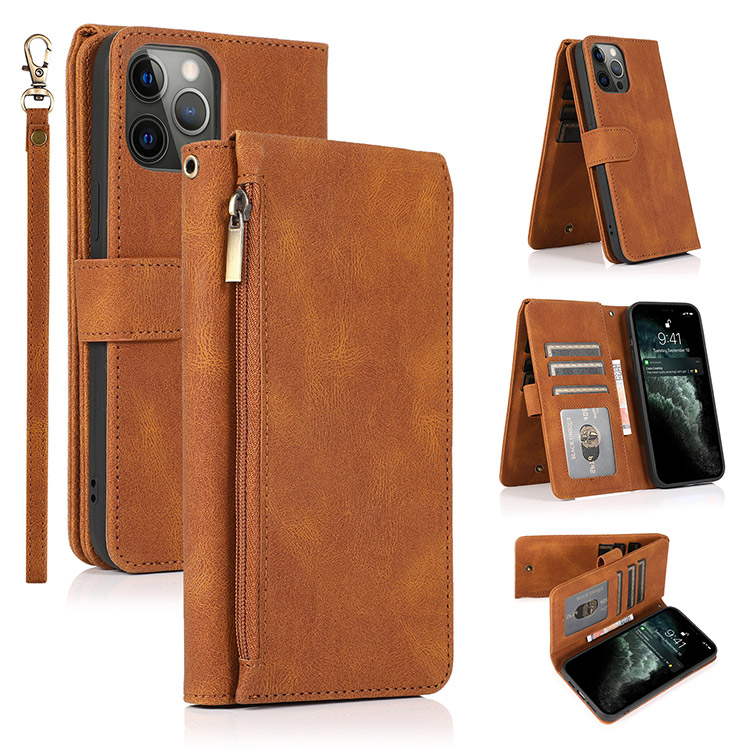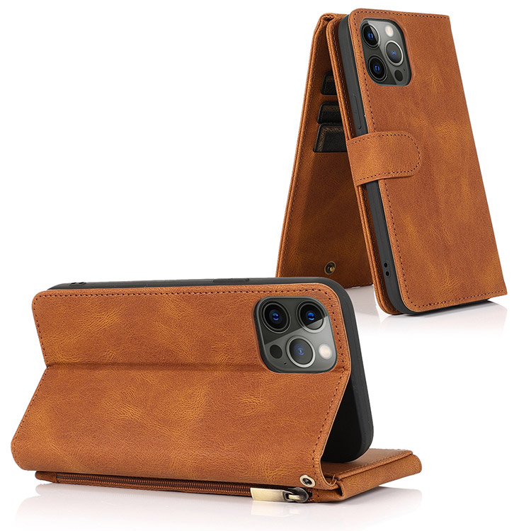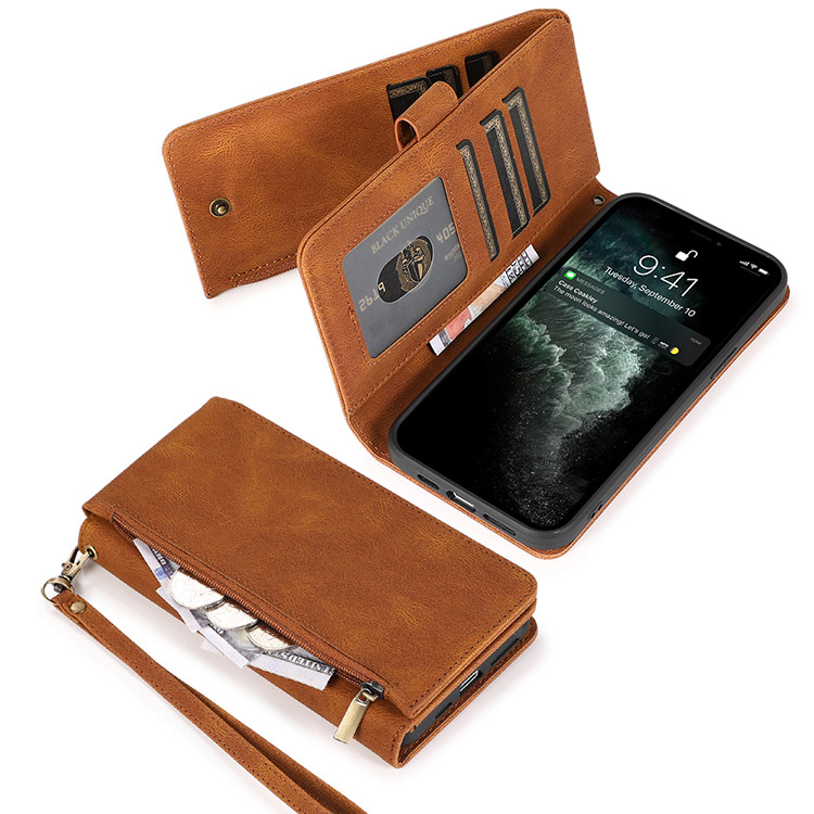 Casebus Classic Flipper Wallet Phone Case, Premium Retro Leather, Folio Zipper, Magnetic Closure, Stand Holder with Wrist Strap Shockproof Case