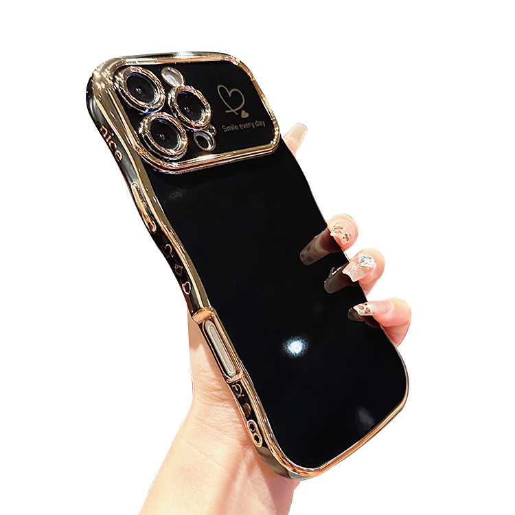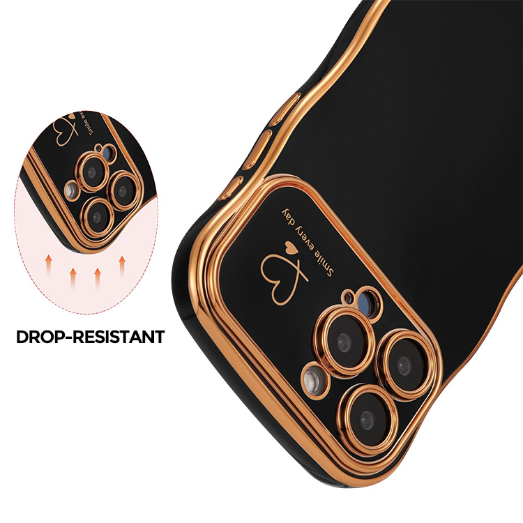 JENNIFER Casebus Luxury Plating Phone Case, Heart Wave Shaped Curled Edge Design, Shockproof Protective Cover