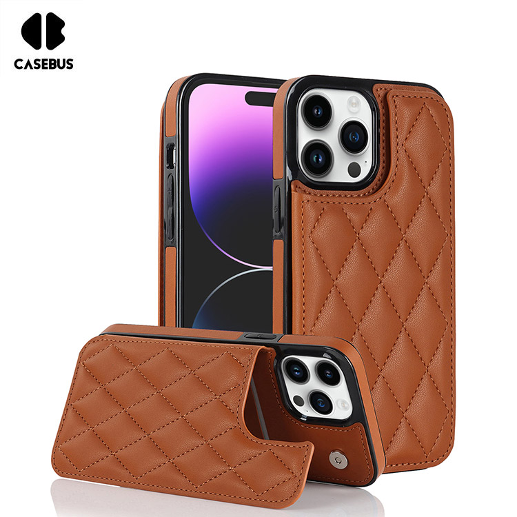 Casebus Slim Fashion Crossbody Case, Leather Lozenge Pattern, Adjustable Lanyard & Wrist Strap