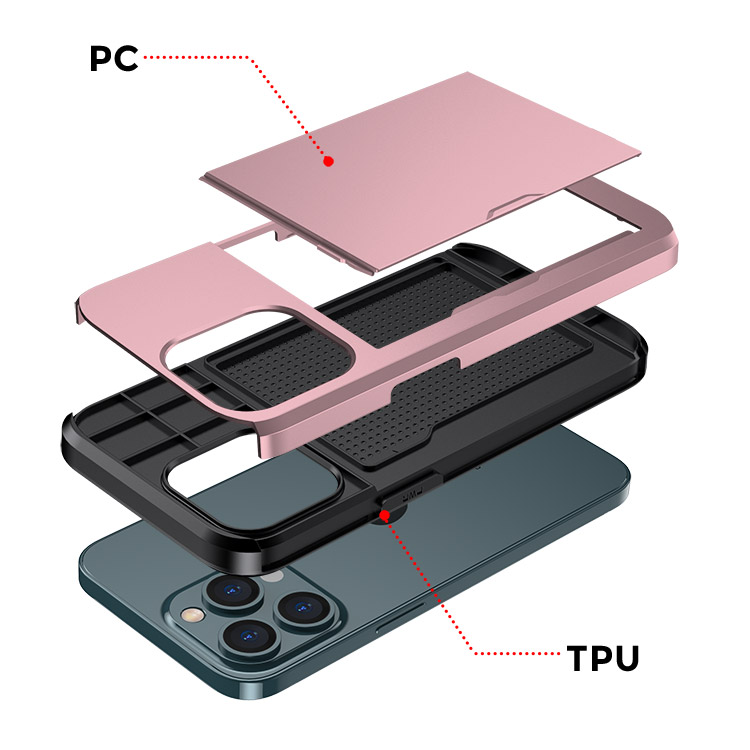 SHAREEF Casebus Classic Phone Case, with Credit Card Holder, Sliding Slot Heavy Duty Protection Dual Layer Armor Shell Cover
